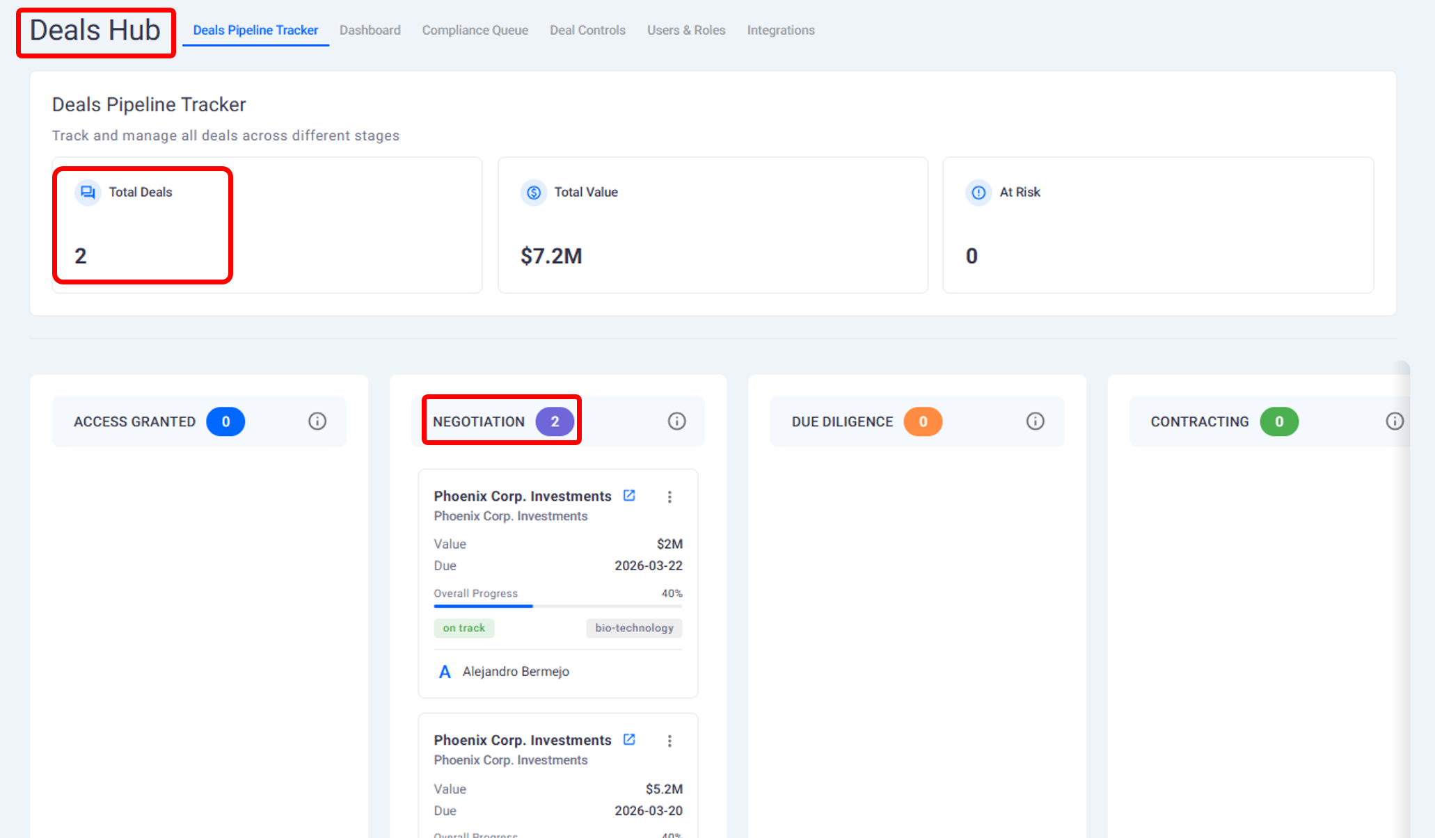 All activity tied to a buyer is tracked through the Deal Hub