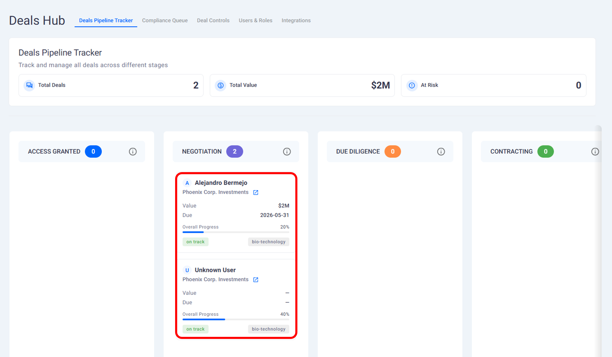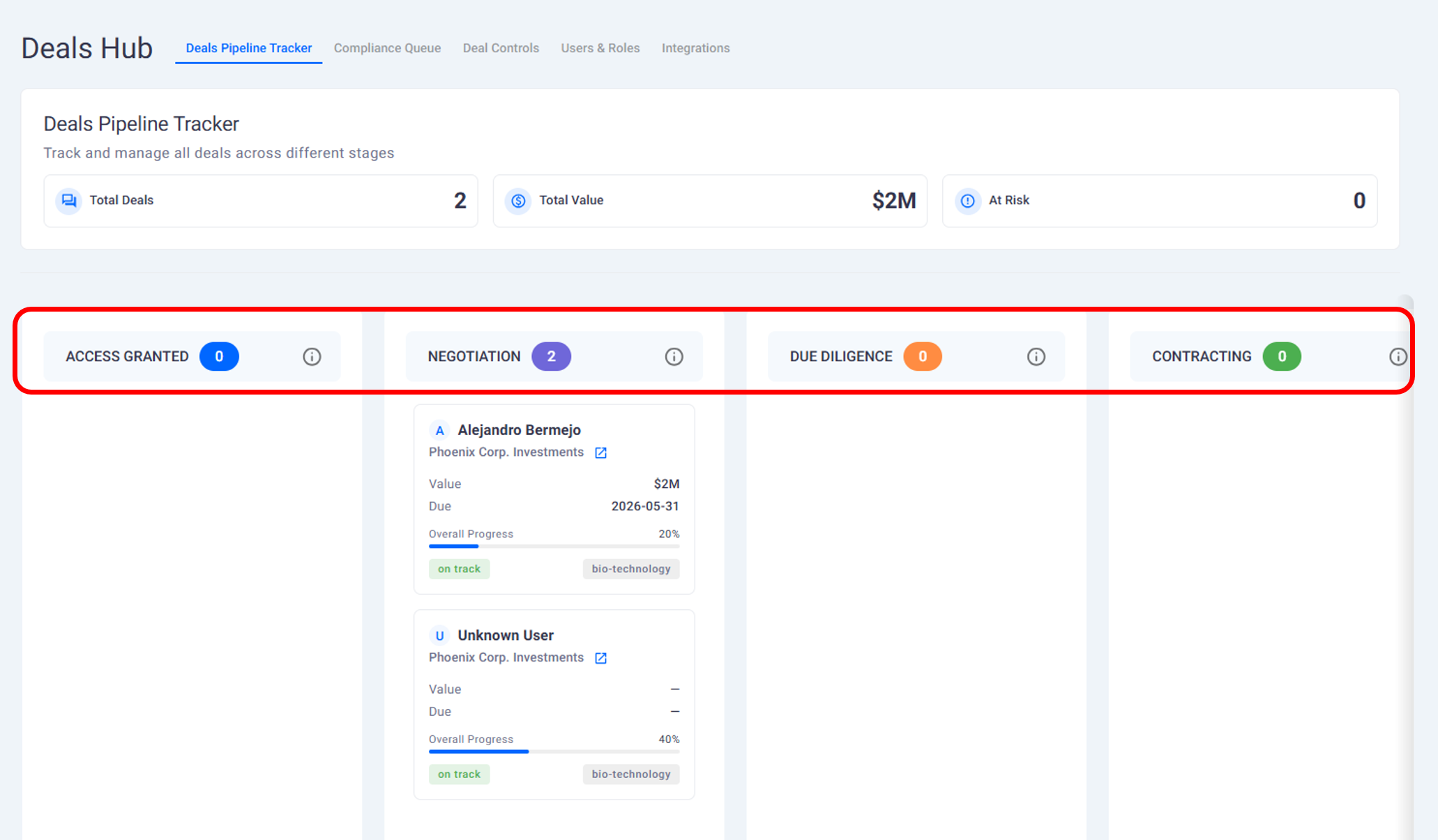 Deal Hub and Tracking Active Deals