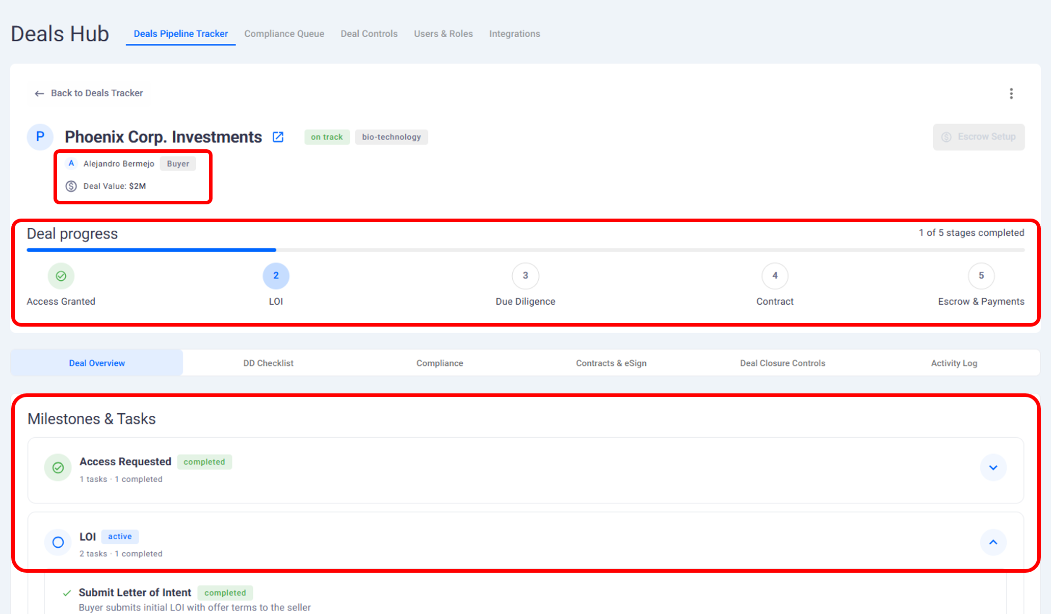 The Deal Hub acts as the central place to manage your M&A process once buyer interest becomes serious.