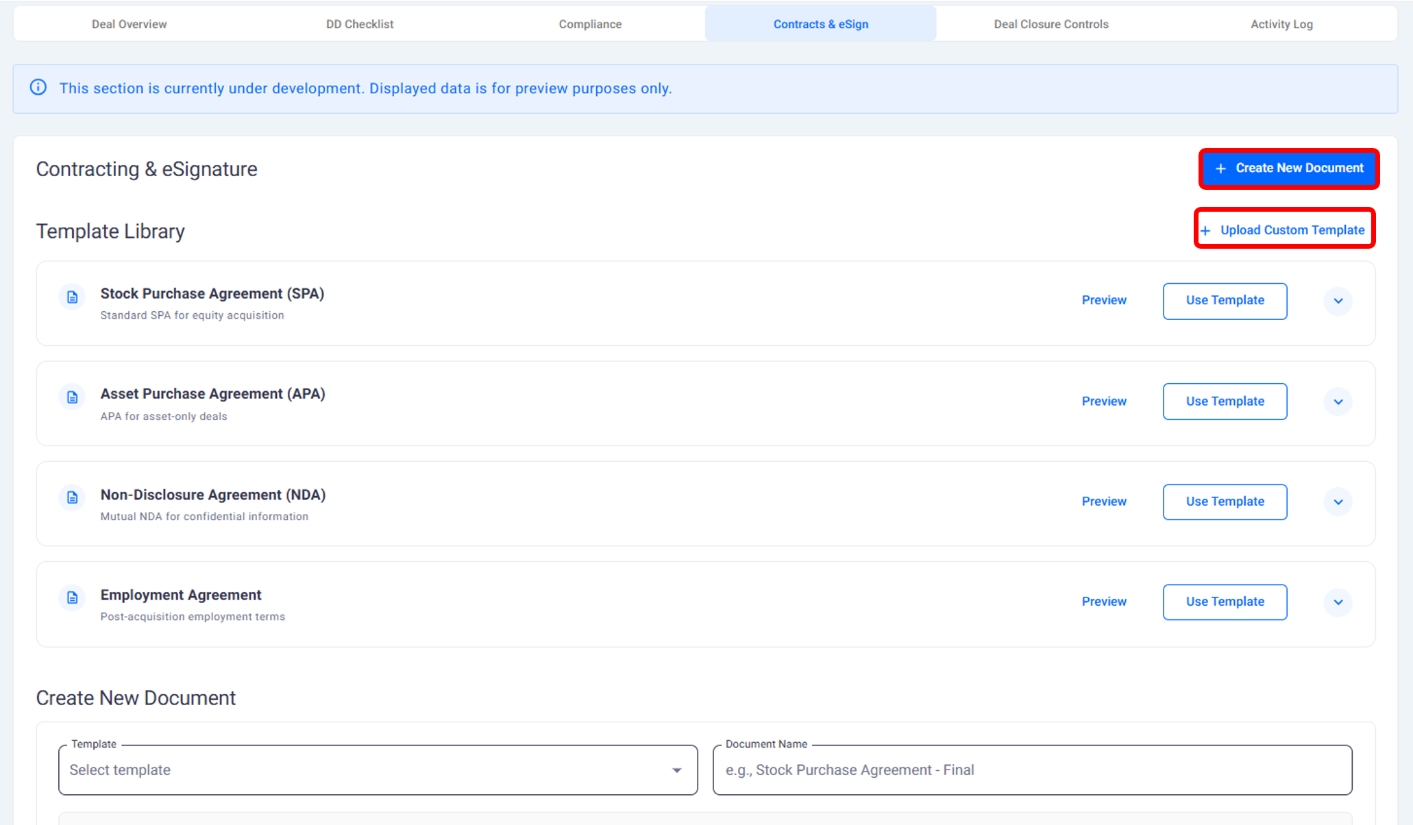 Contract signing and deeper contract management are areas that are being built and expanded. Any contract activity shown at this stage reflects early functionality rather than a fully automated process.